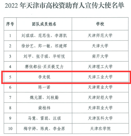 近日,天津市委教育工委、天津市教委举办了“青春感党恩 筑梦新征程”2022年天津市高校资助育人宣传大使选拔赛,经我校推荐、本人视频展示、专家评审,人文学院编导1903班李龙锐从天津市高校选手中脱颖而出,被认定为“2022年天津市高校资助育人宣传大使”,这也是我校学子首次获评此项荣誉。刘鑫老师被认定为“2022年天津市高校资助育人宣传大使选拔赛优秀指导教师”。