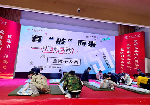 4月26日,党委学工部举办了“有‘被’而来,一往无前”叠被子比赛。比赛从现场教学开始,退伍大学生梁瑞强进行了细致耐心的示范。预赛环节,几支代表队开展了激烈角逐,通过退伍大学生现场点评打分,学校西苑社区的“每天起床都叠被子”队和东苑社区的“偏偏和你作对队”双双进入决赛。决赛中两支队伍鼓足干劲,争分夺秒,最终来自西苑社区的“每天起床都叠被子队”取得了胜利。