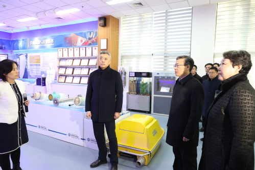 在调研中,王力军秘书长实地察看了我校高性能纤维及纺织复合材料制备技术国家地方联合工程研究中心和分离膜与膜过程国家重点实验室。在研究中心,他详细了解多维立体编织技术的成型基理、应用领域、产业化情况,对于复合材料研究院立足自主创新所取得的标志性成果和为国家经济社会发展作出的贡献给予充分肯定。