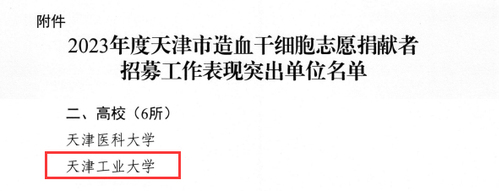 近日,天津市红十字会发布了《关于表扬2023年度天津市造血干细胞志愿捐献者招募工作表现突出单位的通报》,对在2023年度造血干细胞志愿捐献者招募工作中表现突出的河西区红十字会等8家区红十字会,以及结合大学生思政教育开展造血干细胞志愿捐献者招募活动卓有成效的6所高校予以通报表扬,c7网页版获评天津市造血干细胞志愿捐献者招募工作表现突出单位。