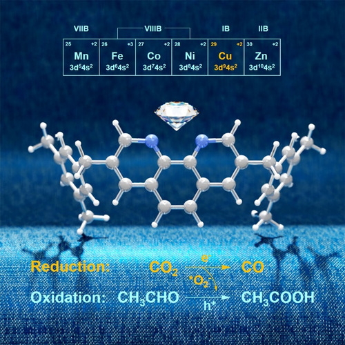 本研究在前期限域单原子位点催化剂的研究基础上(Nat. Catal., 2021, 4, 719),开发了一种带有邻菲罗啉单元的共价邻菲罗啉框架(CPFs)材料,用于锚定d5到d10的SASs(Mn²⁺、Fe³⁺、Co²⁺、Ni²⁺、Cu²⁺和Zn²⁺),如图1所示。经过系列实验表征和理论计算验证,Irving-Williams序列准确预测了上述单原子位点催化剂的稳定性和电荷转移效率。光催化性能测试结果表明,与其他metal-SASs/CPFs催化剂相比,Cu-SASs/CPFs展现出更优异的光还原CO2到CO和光氧化CH3CHO到CH3COOH的活性。